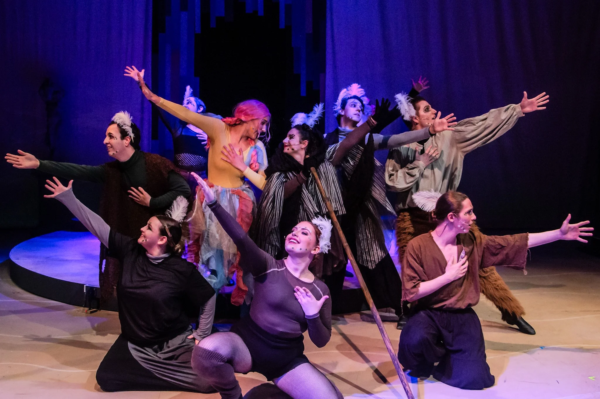 Yeast Nation was my senior project, where I was tasked with turning actors into single celled organisms with extreme characteristics and emotions. My director asked one major thing, and that was to have a diversity of looks, and avoid making characters all identical. I chose to accomplish this using color and textures to delineate familial ties and lineage as well as shaping to create more blobbed and interesting silhouettes.
